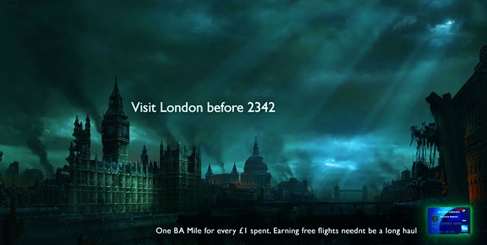 Amex/BA Credit Card launch. Earning free flights needn’t be a long haul. The benefit of these behemoths of travel combining lay in the speed Air Miles could be accumulated Every £1 spent earned an Air Mile. Instead of waiting a lifetime, card holders could see the world for free before its dystopian end