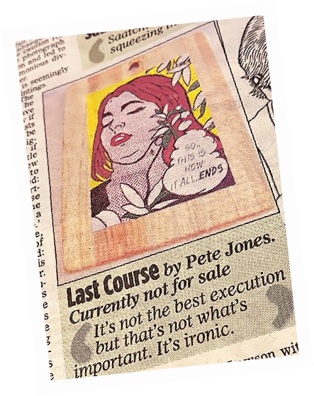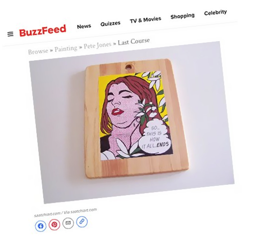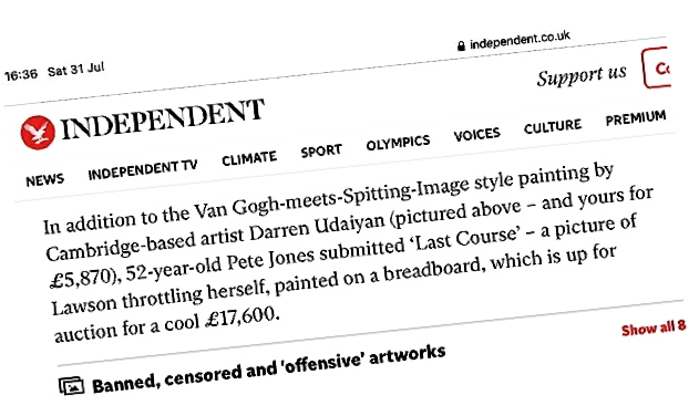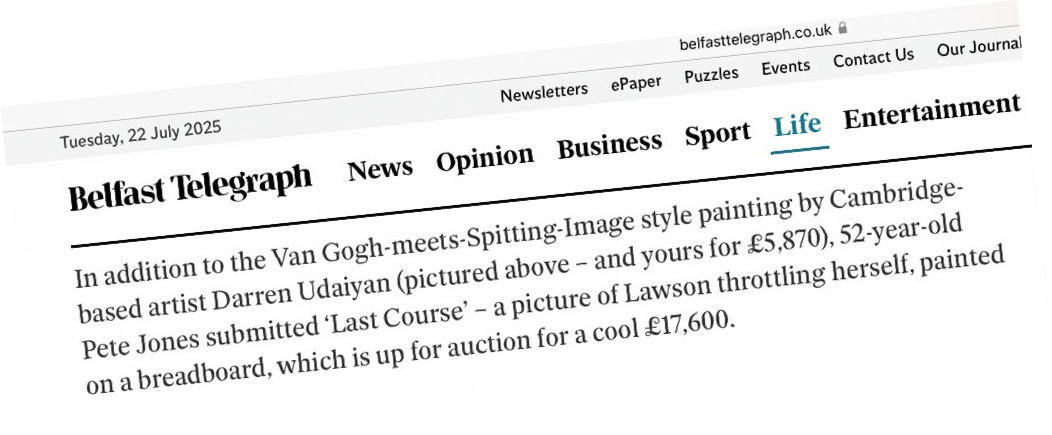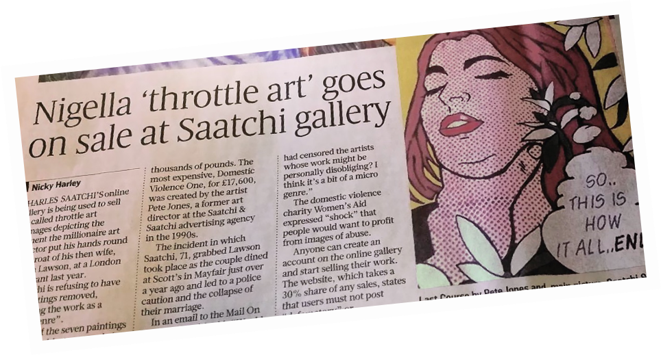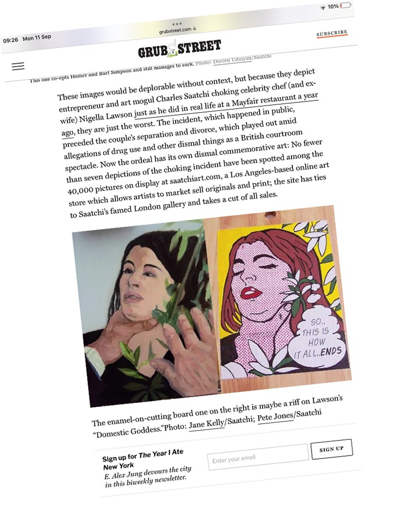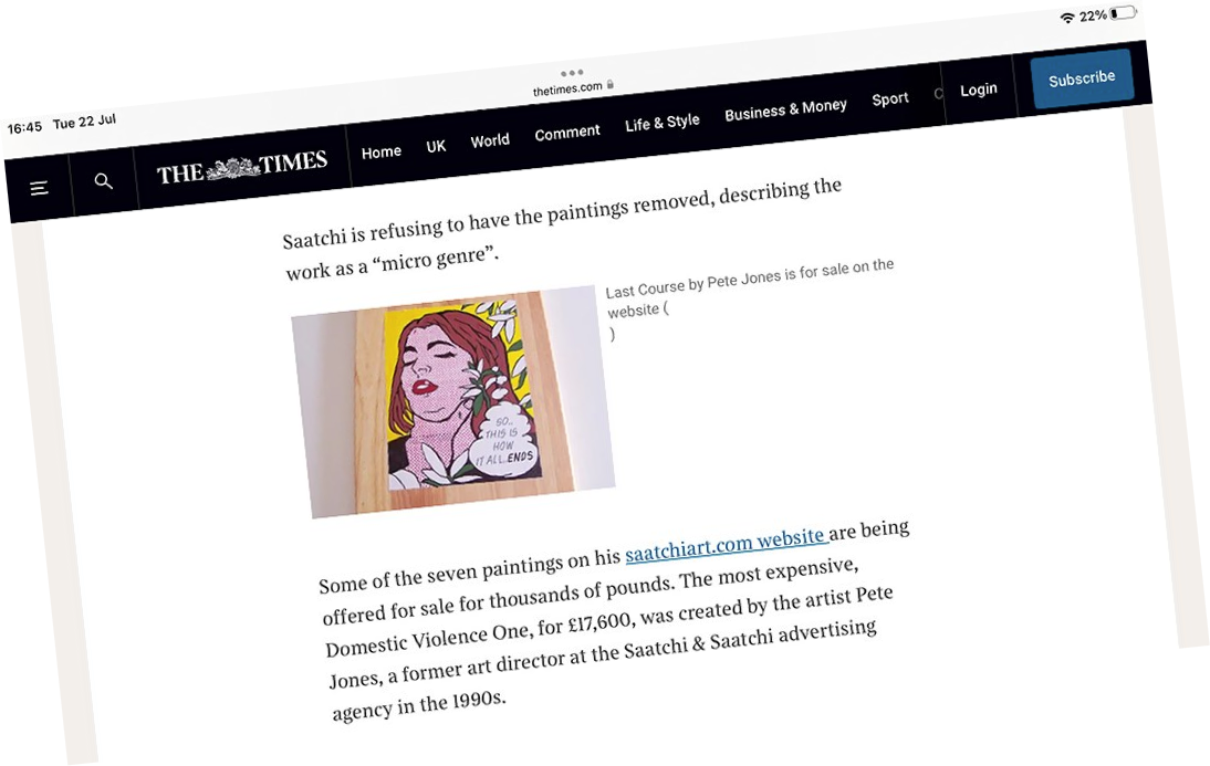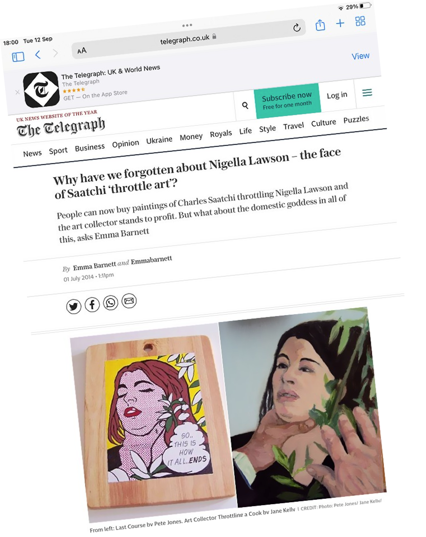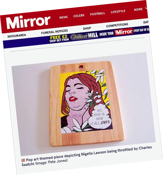 I also painted pop art versions on chopping boards. Out of the blue Amy Oliver, a reporter on The Mail on Sunday got in touch and two days later the chopping board painting with all its irony, was splashed across the Sundays and went round the globe online