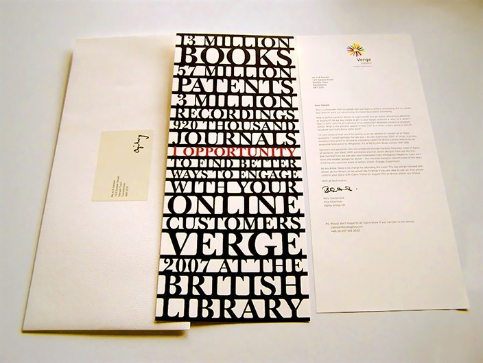 Invite. Verge, Ogilvy Digital Summit. Open to clients and staff held at the British Library who’s iconic bronze gates lent their design