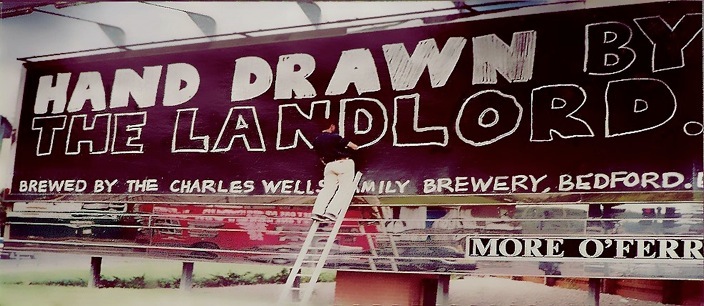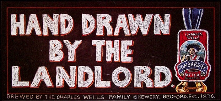 Pitch win. Core creative idea. Charles Wells wanted an authentic cask conditioned look and feel. Many Soho pubs had guest beers on blackboards so this became the idea. The posters would look as if a pub landlord had drawn them. We asked the brewery to find us a Landlord to hand draw the 96 sheet press stunt